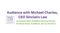 Thursday, March 21st 6pm - 8pm An audience with Michael Charles CEO of Sinclairs Law - special education law. Family Voice Surrey is delighted to welcome Michael Charles, SEND Lawyer, to an in-person talk/Q&A session especially for Surrey parent carers held in Guildford. Spaces are limited, please reserve your free [...]
