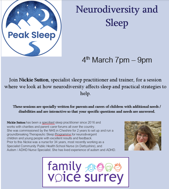 Join Nickie Sutton, Specialist Sleep Practitioner, for a workshop on how being neurodivergent affects sleep and what you can do to help (no taking away of screens!). You will have access to a recording afterwards and will receive a comprehensive information pack to take away.