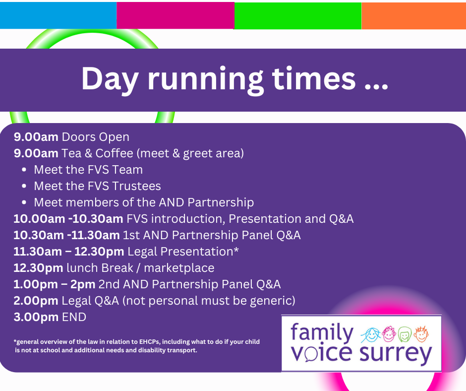 If you have any questions for the Panel discussion please email questions@familyvoicesurrey.org and we will ask them on the day